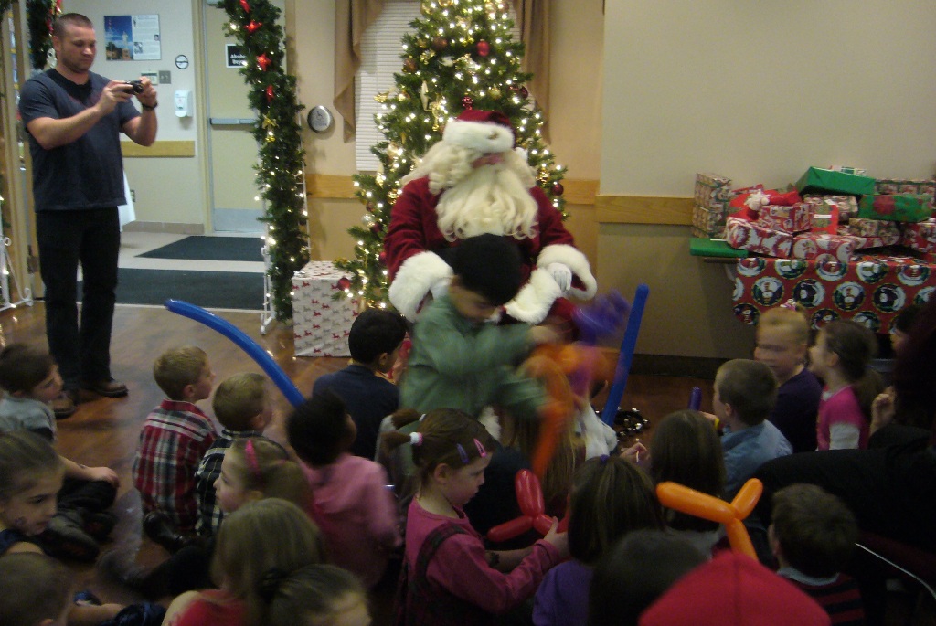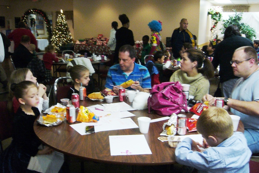 Children'sChristmas Party 2011 There were hot dogs and candy and Santa and toys, lots of fun for all the girls & boys. A Magician, some clowns, a tattoo booth and crayon gear, Merry Christmas to all and see you next year!